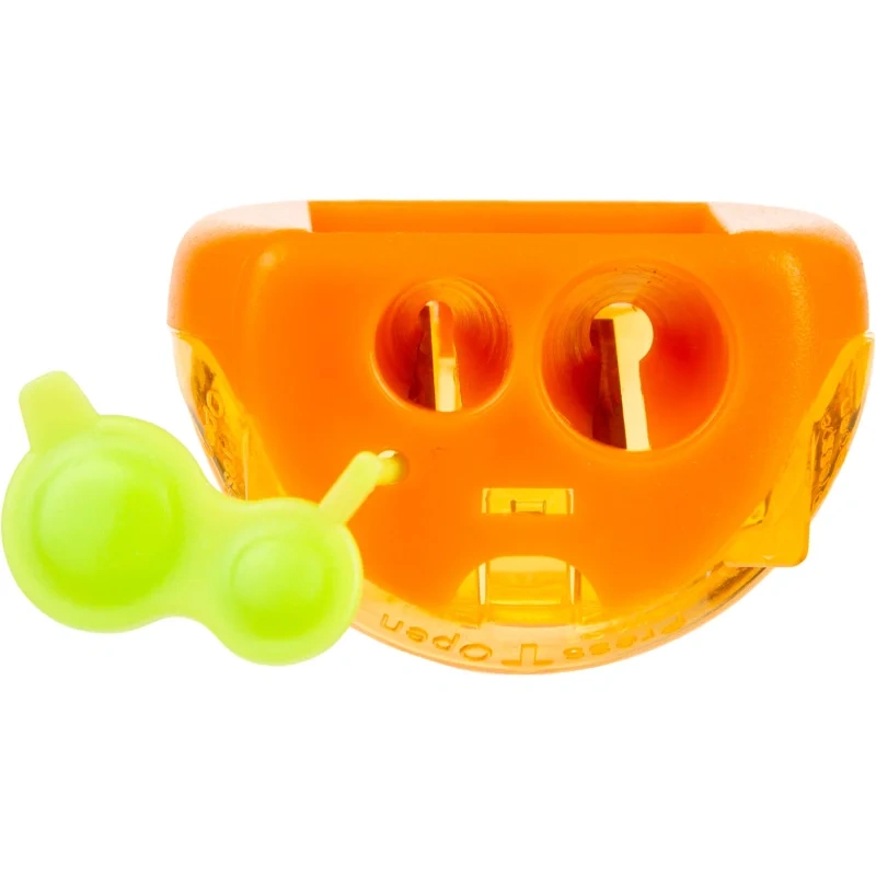 Точилка с контейнером. Пластик. 2 отверстия разного диаметра. Защелка на корпусе исключает самопроизвольное открывание. Защитная крышка предотвращает высыпание стружки. Цвет ассорти: зеленый, желтый, синий, красный. Металлическое лезвие точилок имеет высокую степень заточки и защиту от коррозии, благодаря чему карандаш затачивается аккуратно и легко, оставляя тончайшую стружку. Грифель не ломается и не крошится при затачивании. Особое винтовое крепление лезвия предотвращает его расшатывание и гарантирует неподвижность, значительно увеличивая срок службы точилки. Размер точилки — 42×37×27 мм. Внимание! Товар поставляется в нескольких вариантах цвета (без возможности выбора).