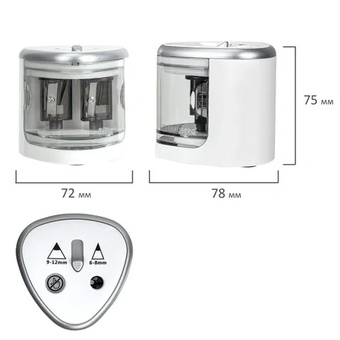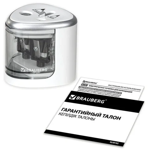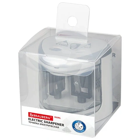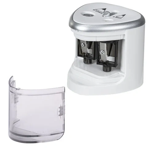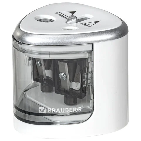 Точилка электрическая BRAUBERG DUAL (для 2 диаметров карандашей!), 4 батарейки АА, белая, 270580