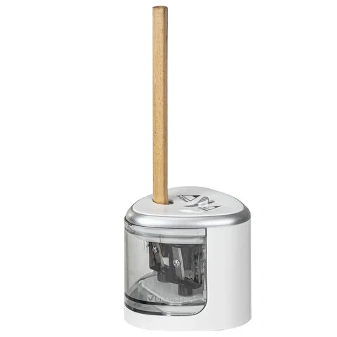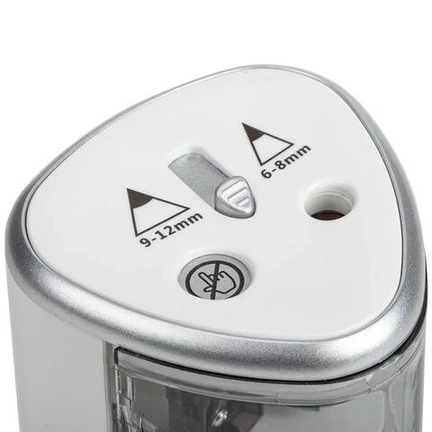 Стильный корпус точилки, выполненный из ударопрочного пластика, позволит ей стать интересной деталью любого интерьера, а прочное прямое лезвие осуществляет острую и быструю заточку любых деревянных и пластиковых карандашей. Подходит как для чернографитных, так и для цветных карандашей. Точилка имеет два отверстия для карандашей диаметром 6-8 мм и 9-12 мм, а также оснащена предохранительным клапаном. Помимо прочего, обладает противоскользящим основанием. Механизм приходит в движение при помощи электричества от 4 батареек АА (в комплект не входят). Затачивание начинается автоматически после помещения карандаша внутрь точилки, и через несколько секунд карандаш идеально заточен и готов к использованию.