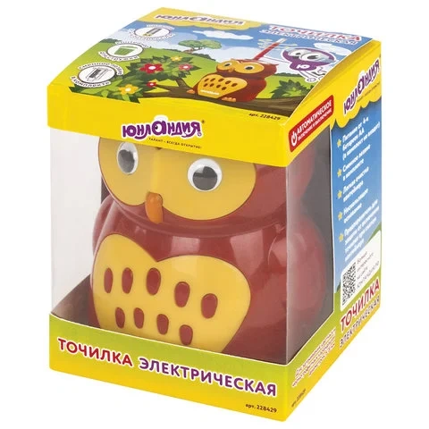 Точилка электрическая Юнландия Совушка 1 отверстие, с контейнером