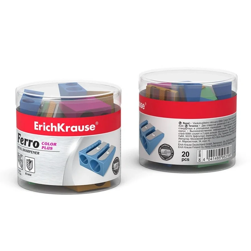 Точилка ErichKrause Ferro Color Plus, металлическая, два отверстия, цвет ассорти