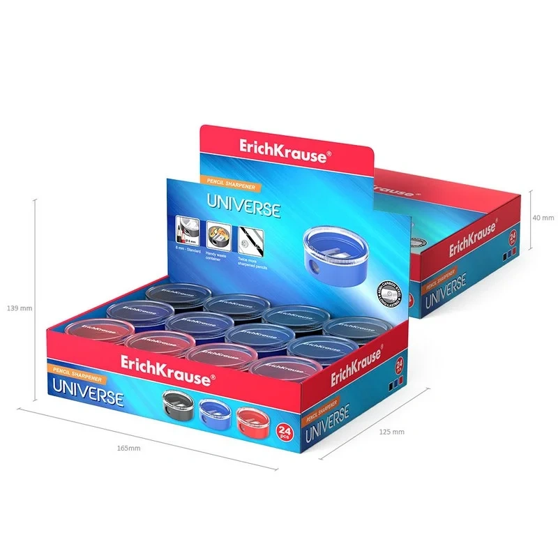 Точилка ErichKrause Universe пластиковая с контейнером, цвет ассорти