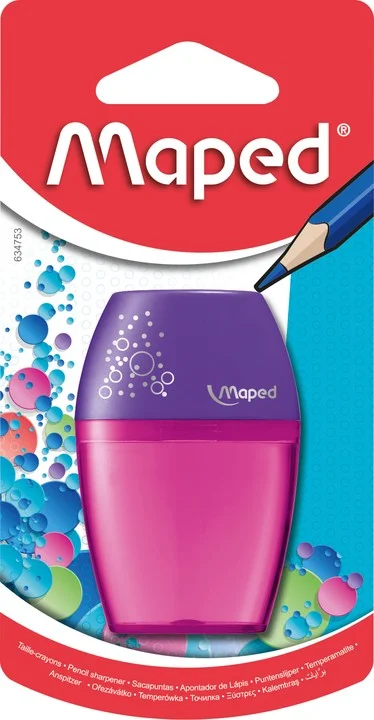 Точилка MAPED SHAKER, 1отв, прозр. контейнер, ассорти, блистер