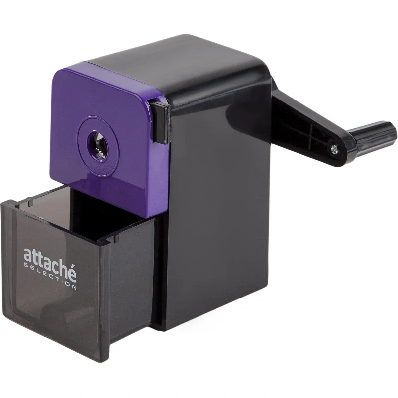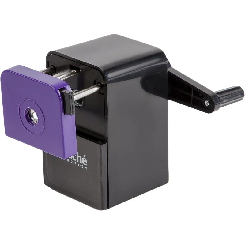 Точилка механическая с одним отверстием Attache Selection. Точилка выполнена в черном пластиковом корпусе с деталями фиолетового цвета. Стальной сердечник. Выдвижной механизм для захвата карандаша, регулирующий заточку. Для карандашей диаметром не более 8 мм. Предназначена для круглых, трехгранных или шестигранных карандашей. При необходимости точилка может быть зафиксирована при помощи прилагаемой струбцины (в комплекте). Минимальная длина затачиваемого карандаша — 60 мм. Размер точилки: 105×58×91 мм. Основание точилки имеет противоскользящее покрытие. Данная точилка обладает механизмом смены лезвия.