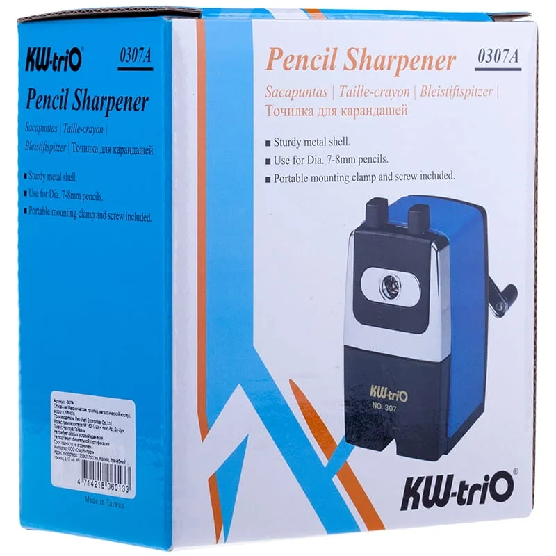Точилка механическая Kw-Trio 307A 1 отверстие, с контейнером, ассорти