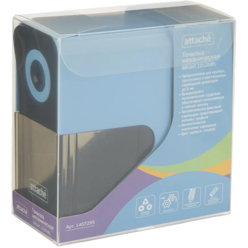 Точилка механическая Attache Bright Colours,авто-фиксация карандаша,голубой
