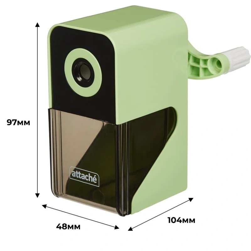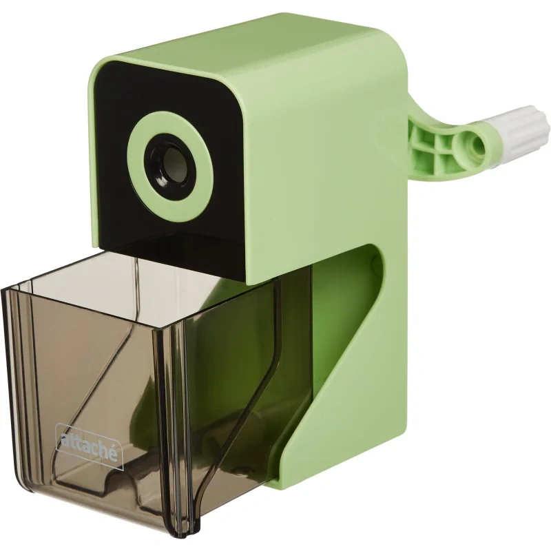 Механическая точилка с автофиксацией карандаша Attache Bright Colours выполнена в корпусе из пластика. Цвет: зеленый. Легкая и безопасная в использовании точилка оснащена металлическим сердечником и удобной ручкой, что позволит максимально быстро заточить большое количество карандашей. Предназначена для круглых, трехгранных или шестигранных карандашей диаметром до 8 мм. Ограничений по длине карандаша нет. Точилка имеет вместительный контейнер для сбора стружки. Точилка может крепиться к столу (струбцины в комплекте нет).