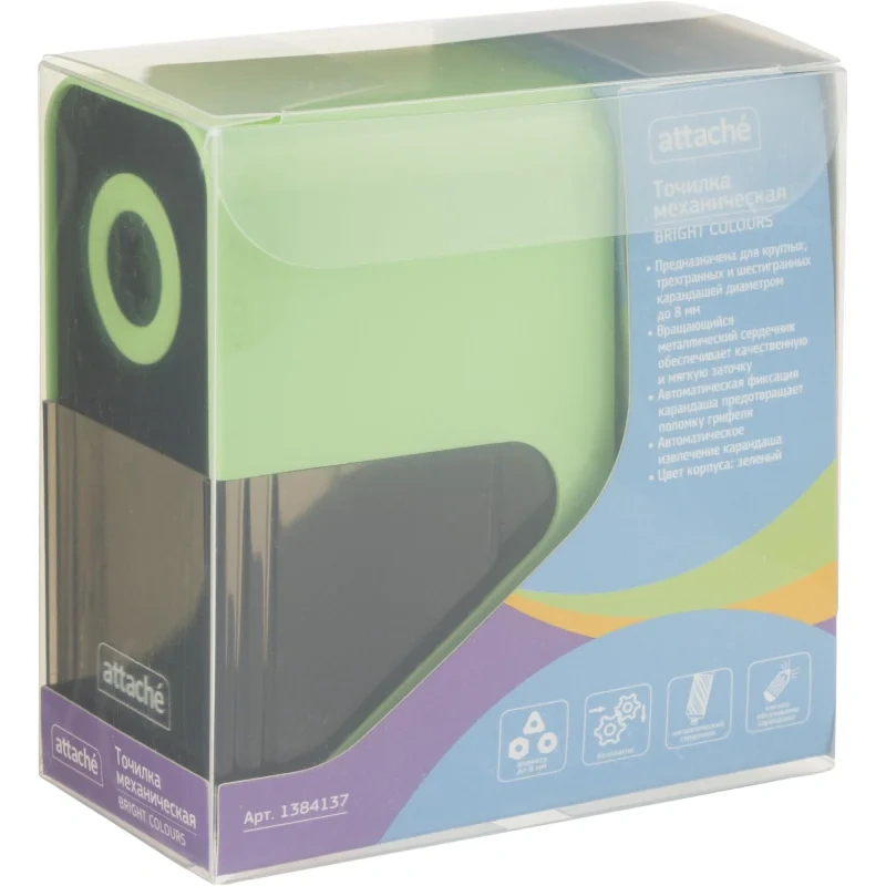 Точилка механическая Attache Bright Colours,авто-фиксация карандаша,зеленый