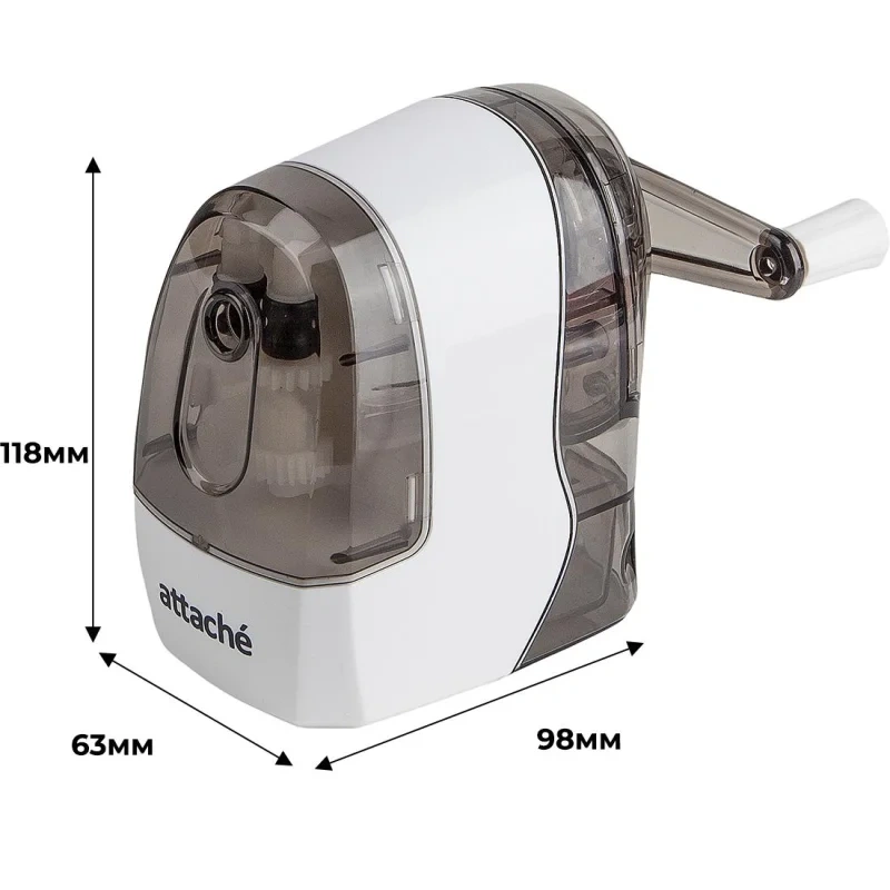 Компактная механическая точилка с вместительным контейнером для сбора стружки и одним отверстием. Точилка выполнена в белом пластиковом корпусе с полупрозрачными тонированными деталями серого цвета. Легкая и безопасная в использовании точилка оснащена металлическим сердечником и удобной ручкой, что позволит максимально быстро заточить большое количество карандашей. Острое лезвие сердечника обеспечивает качественную и мягкую заточку. Предназначена для круглых, трехгранных или шестигранных карандашей диаметром до 8 мм. Ограничений по длине карандаша нет. При автоматической фиксации карандаша исключается возможность его повреждения или поломки грифеля. Размеры точилки: 118×63×98 мм. В комплекте держатель для карандаша (струбцины в комплекте нет).