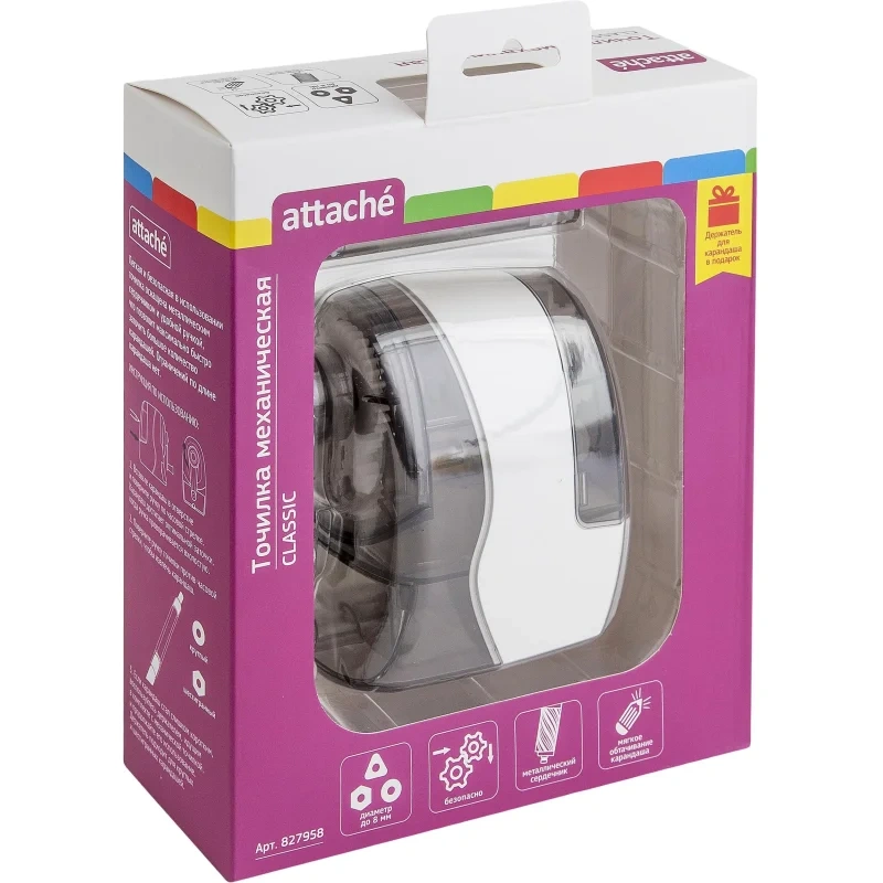 Точилка механическая Attache Classic, 8 мм. автоматич.фиксация карандаша