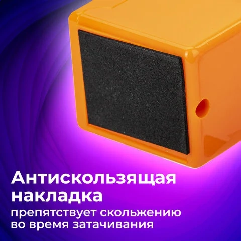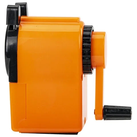 Корпус точилки выполнен из пластика оранжевого цвета. Вращающийся роликовый нож из высококачественной стали обеспечивает быструю и острую заточку. Точилка имеет одно отверстие и вместительный контейнер для сбора стружки. Диаметр затачиваемого карандаша - 8 мм. Размер: 95х45х90 мм.
