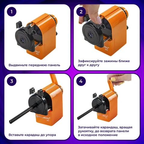 Точилка механическая BRAUBERG 'JET', металлический механизм, корпус оранжевый, 229567