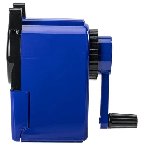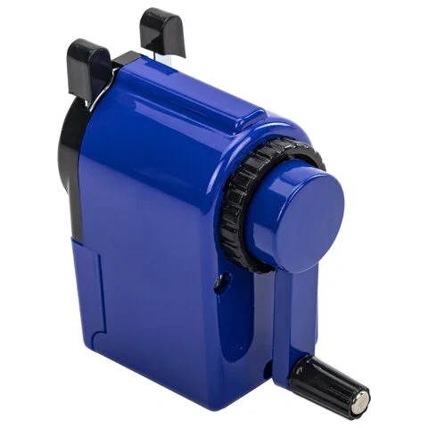 Корпус точилки выполнен из пластика синего цвета. Вращающийся роликовый нож из высококачественной стали обеспечивает быструю и острую заточку. Точилка имеет одно отверстие и вместительный контейнер для сбора стружки. Диаметр затачиваемого карандаша - 8 мм. Размер: 95х45х90 мм.