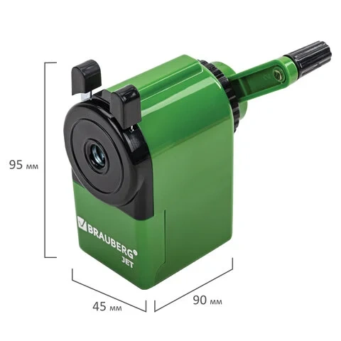 Точилка механическая BRAUBERG 'JET', металлический механизм, корпус зеленый, 229571