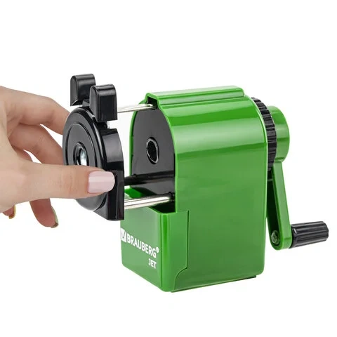 Корпус точилки выполнен из пластика зеленого цвета. Вращающийся роликовый нож из высококачественной стали обеспечивает быструю и острую заточку. Точилка имеет одно отверстие и вместительный контейнер для сбора стружки. Диаметр затачиваемого карандаша - 8 мм. Размер: 95х45х90 мм.