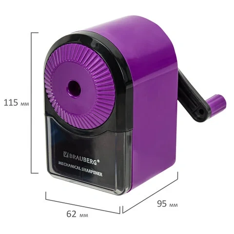 Корпус точилки выполнен из ударопрочного пластика. Вращающийся роликовый нож, изготовленный из высококачественной стали, обеспечивает быструю и острую заточку. Точилка имеет одно отверстие. Несомненным преимуществом данной точилки является возможность регулировки угла заточки в двух положениях. Кроме того, точилка обладает механизмом извлечения сломанного грифеля, что позволяет легко, в одно движение, извлечь застрявший грифель. Вместительным контейнер для сбора стружки позволяет точить дольше, не отвлекаясь на частую очистку контейнера. В комплект входит струбцина для крепления к столу. Диаметр затачиваемого карандаша - 8 мм. Размер точилки: 95х115х62 мм.