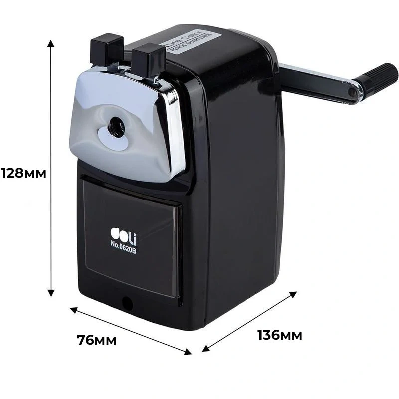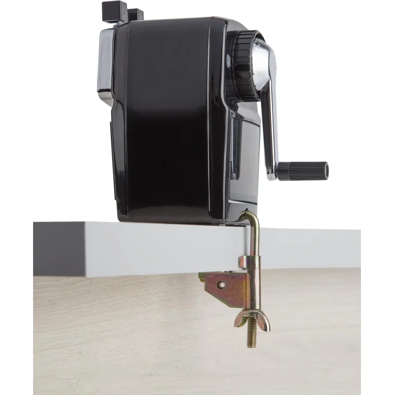 Механическая точилка Deli со струбциной и с одним отверстием для карандашей бережно и быстро заточит затупившиеся или сломанные карандаши. Удобна в обращении, позволяет добиться нужного результата при минимальных усилиях. Оборудована противоскользящим покрытием, благодаря чему затачивать карандаши можно одной рукой. Высококачественное стальное лезвие и точно рассчитанная конструкция позволяют сделать процесс затачивания не только легким, но и сводят риск поломки грифеля к нулю. Точилка оснащена функцией автоматического затягивания карандаша в отверстие для заточки. Подходит для карандашей, изготовленных из пластика и из любого вида древесины, любой формы (круглые, шестигранные, треугольные) с разной степенью мягкости. Для предотвращения засора механизма не затачивайте пастельные, восковые, акварельные и иные карандаши с мягким грифелем. Размер точилки: 128×76×136 мм. Вес: 420 г. В комплект входит струбцина для крепления к столу.