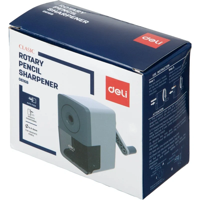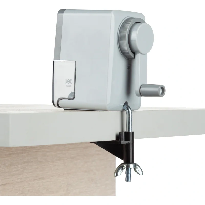Точилка для карандашей механическая Deli со струбциной имеет одно отверстие. Обеспечивает плавную и мягкую заточку. Высококачественное долговечное стальное лезвие и точно рассчитанная конструкция позволяют не только сделать процесс затачивания легким, но и минимизировать риск поломки грифеля. Точилка имеет легко очищающийся резервуар для стружки и противоскользящее основание. Подходит для цветных и графитовых карандашей любой формы (круглые, шестигранные, треугольные) и разной степени мягкости. Для предотвращения засора механизма не затачивайте пастельные, восковые, акварельные и иные карандаши с мягким грифелем. Размер: 102×54×101 мм.