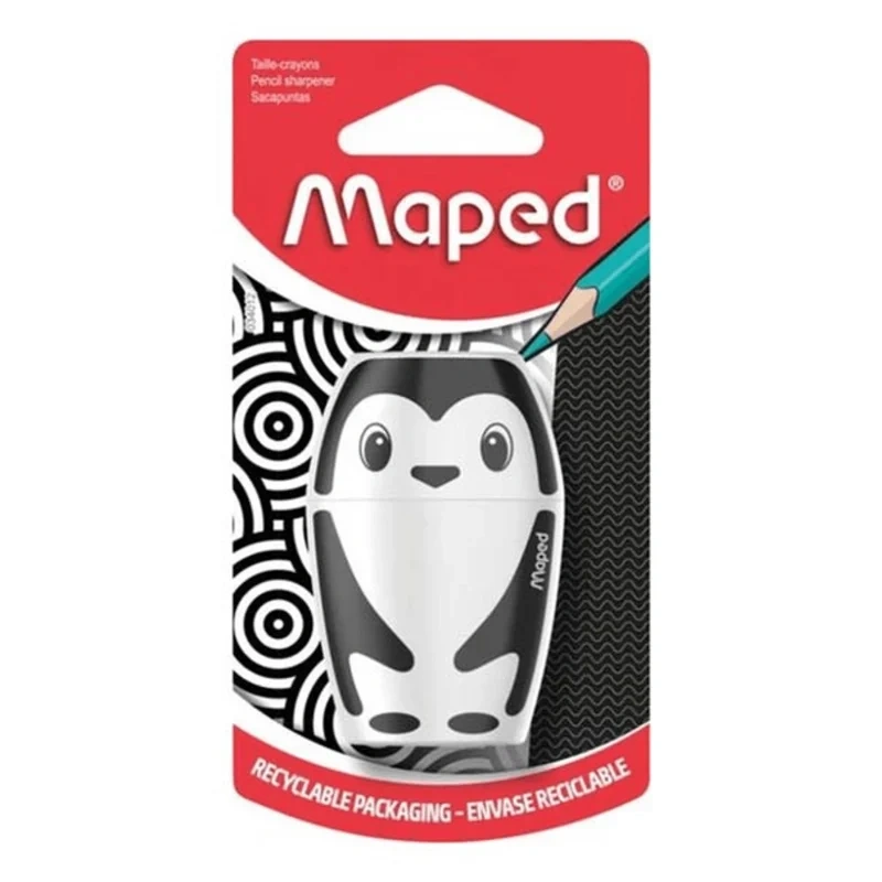 Точилка Maped Shakky 1 отверстие, с контейнером. Предназначена для заточки графитовых и цветных карандашей любого профиля. Прочная точилка из ударопрочного пластика с удобным вместительным контейнером для стружки. Анималистический дизайн - Панда, Пингвин. Фирменное лезвие с логотипом Maped обеспечивает качественную и точную заточку. Гладкий эргономичный корпус - удобно держать в руке. Компактная и легкая. Пластиковый сердечник. 1 отверстие-8 мм. Размер точилки: 41х61х21. Внимание! Товар поставляется в нескольких вариантах дизайна (без возможности выбора).