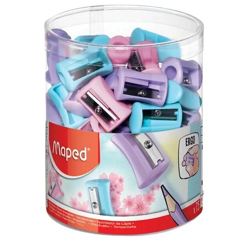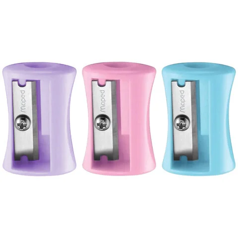Точилка Maped Vivo Pastel, 1 отверстие. Прочная пластиковая точилка ярких цветов, без контейнера. Предназначена для заточки графитовых и цветных карандашей любого профиля. Фирменное лезвие с логотипом Maped обеспечивает качественную и точную заточку. Сердечник пластиковый. Гладкий эргономичный корпус - удобно держать в руке. Компактный размер подходит для школьников. 1 отверстие - 8 мм. Вес: 2.8 г. Размер точилки: 29x19x13 мм. Цвета: пастель розовый, голубой, фиолетовый Внимание! Товар поставляется в различных вариантах дизайна/цвета без возможности выбора.