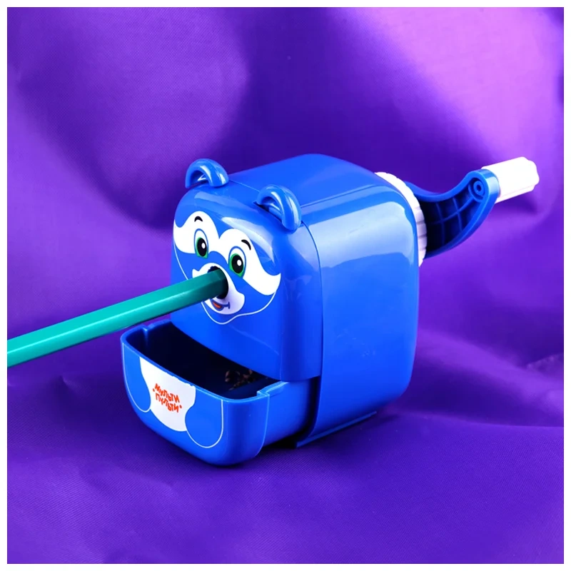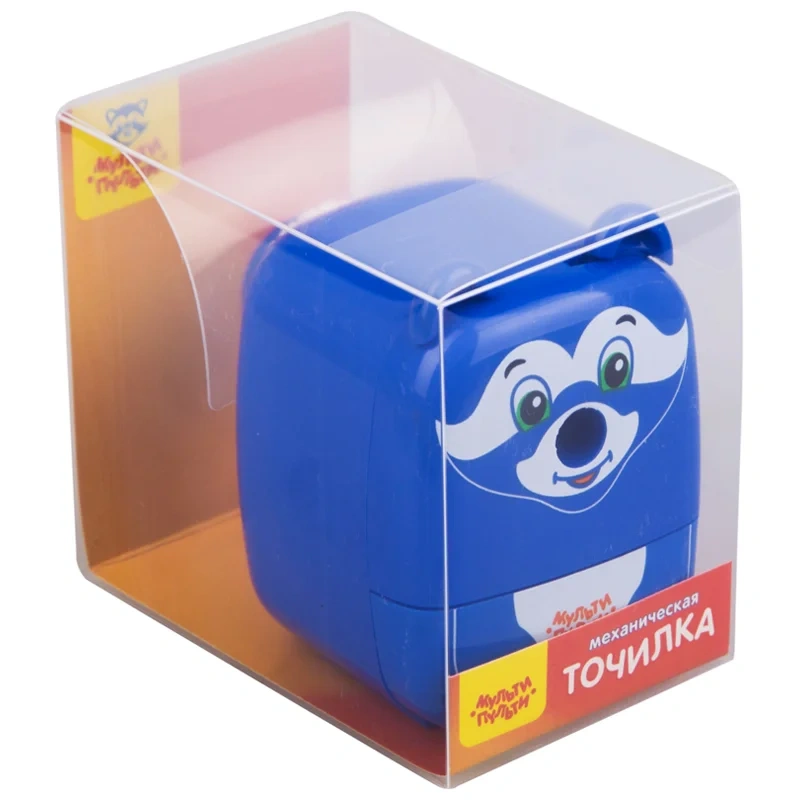 Оригинальная механическая точилка в форме енота. С одним отверстием для заточки карандашей. Лезвие из высококачественной стали. Упаковка в индивидуальные прозрачные ПВХ-коробки. Для детей старше 3-х лет.