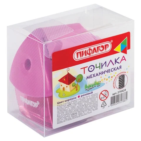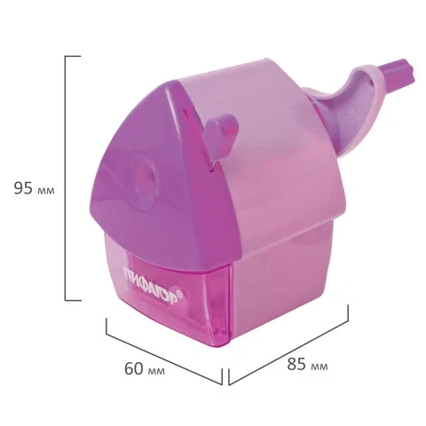 Точилка механическая ПИФАГОР 'Домик гнома', металлический механизм, корпус розовый, 270424