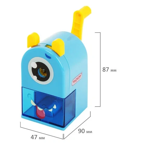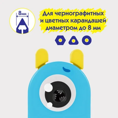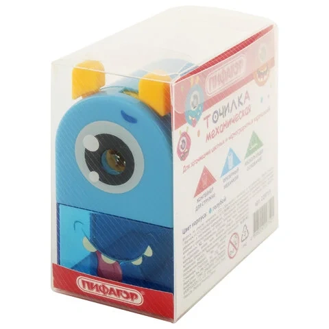 Точилка механическая ПИФАГОР 'Монстрик', корпус голубой, для чернографитных и цветных карандашей, 22