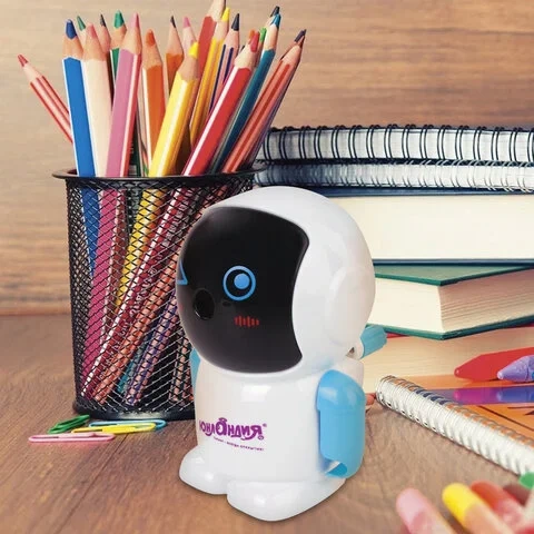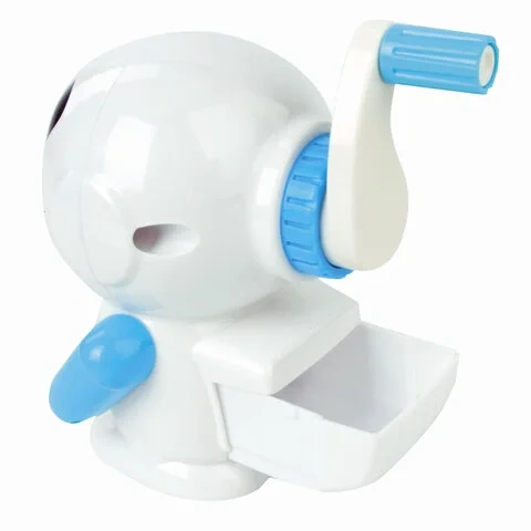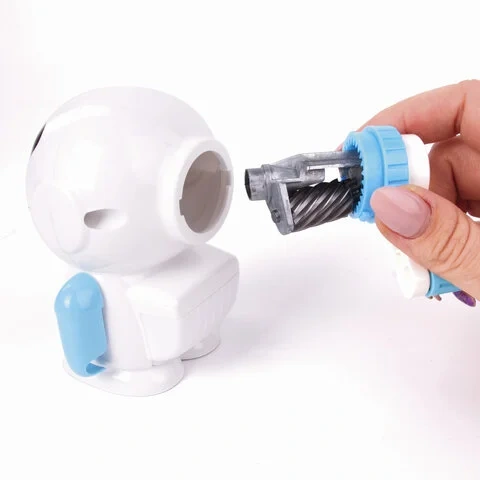 Оригинальный пластиковый корпус в виде астронавта. Во время заточки карандаша ручки астронавта двигаются. В ручки можно вставить карандаш. Вращающийся роликовый нож из высококачественной стали обеспечивает быструю и острую заточку. Точилка имеет одно отверстие и вместительный контейнер для сбора стружки. Диаметр затачиваемого карандаша - 8 мм. Размер: 90х110х80 мм.