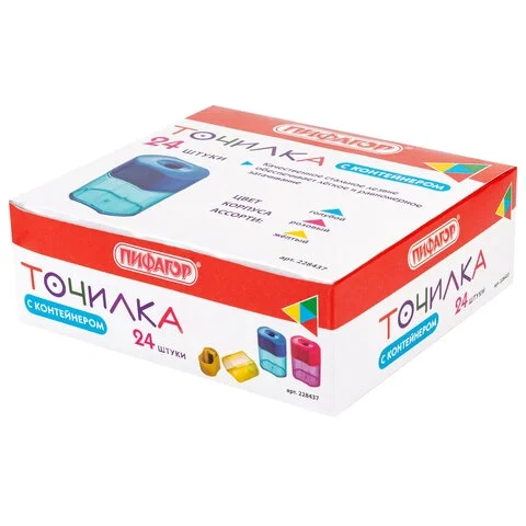 Точилка ПИФАГОР 'Ergo', с контейнером, пластиковая, корпус ассорти, 228437