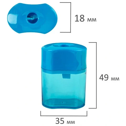 Корпус прямоугольной формы выполнен из пластика. Острое стальное лезвие обеспечивает быструю и легкую заточку. Карандаш затачивается аккуратно, а опилки остаются в специальном контейнере. Размер: 49х35х18 мм.