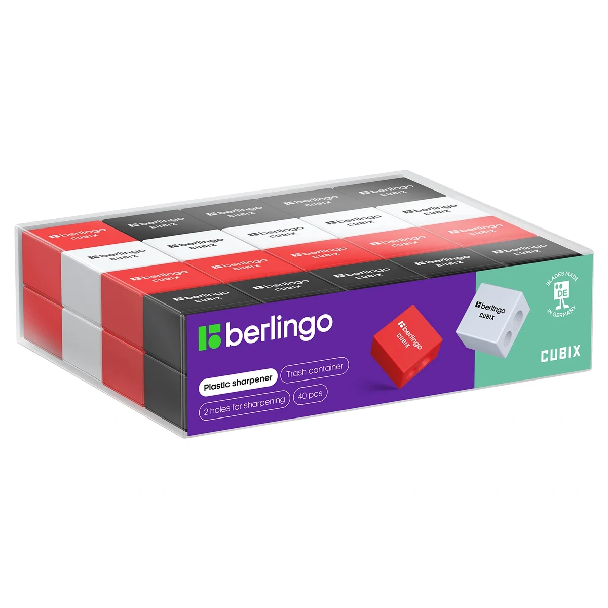 Точилка Berlingo 'Cubix' с 2 отверстиями, стильной кубической формы. Лезвия из углеродистой стали, острое и устойчивое к повреждению, сделано в Германии. Два отверстия для заточки карандашей диаметром от 7 до 11мм. Герметичный контейнер предотвращает выпадание стружки и графита. Идеально подходит для использования в школах, благодаря компактной форме, которая легко помещается в пенал. Подходит для заточки графитовых и цветных карандашей. Индивидуальный штрих-код на каждой точилке. Цвета ассорти.