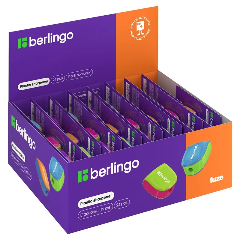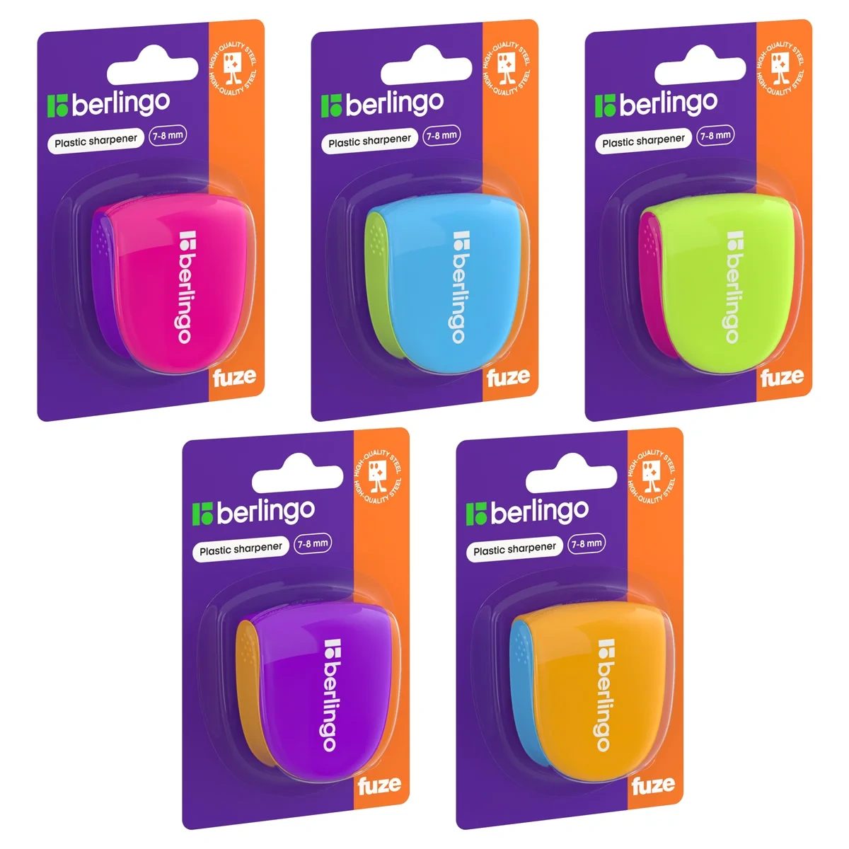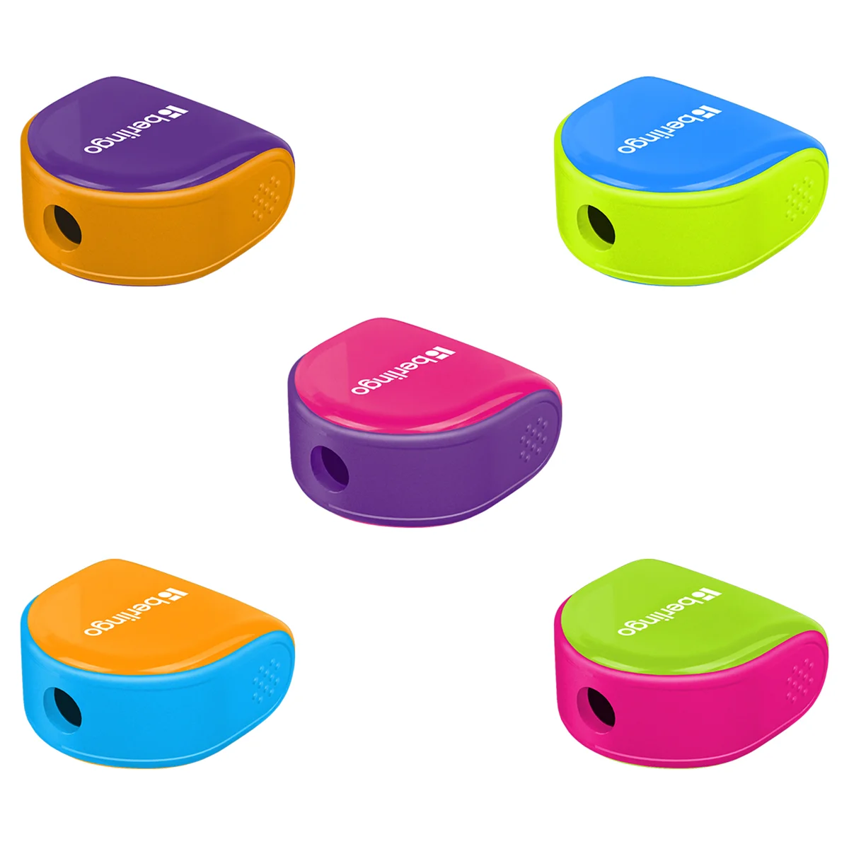 Точилка пластиковая Berlingo 'Fuze Ergo', 1 отверстие, контейнер, ассорти, блистер, европодвес