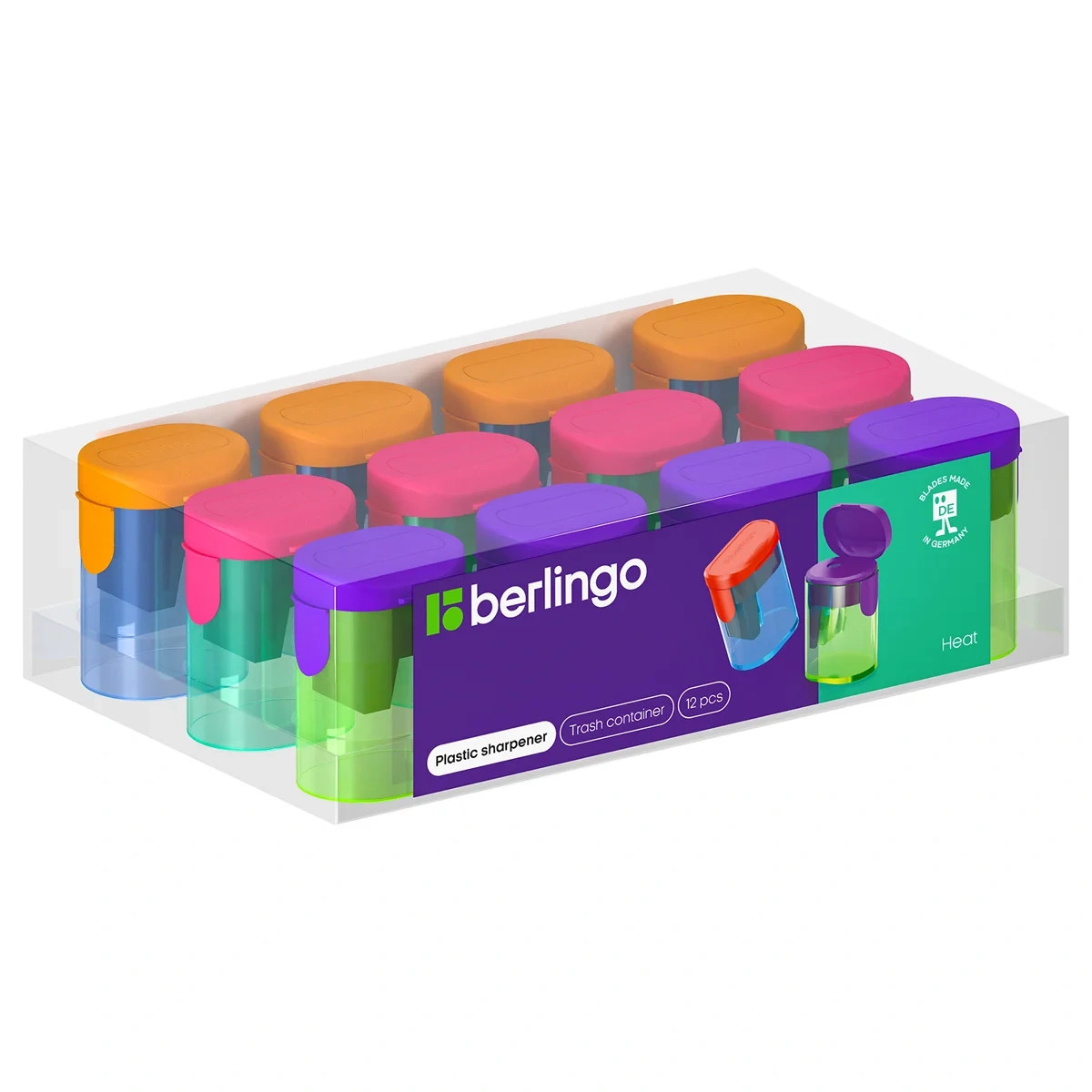 Точилка пластиковая Berlingo 'Heat' 1 отверстие, контейнер, ассорти