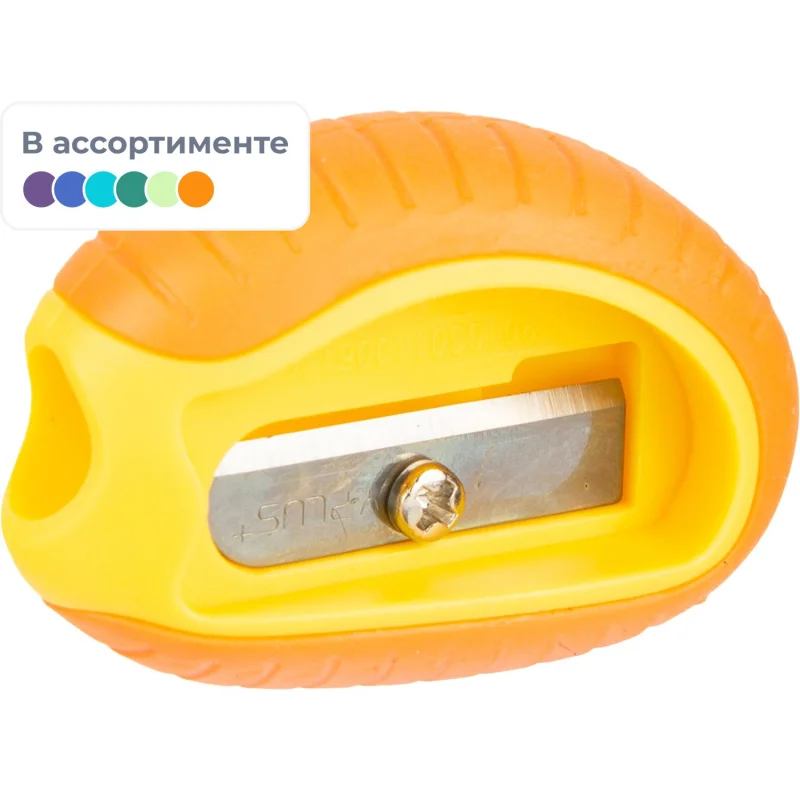 Точилка без контейнера. Пластик, 1 отверстие. Мягкая область обхвата. Цвет ассорти: зеленый, фиолетовый, желтый, оранжевый, черный, голубой, розовый. Металлическое лезвие точилок имеет высокую степень заточки и защиту от коррозии, благодаря чему карандаш затачивается аккуратно и легко, оставляя тончайшую стружку. Грифель не ломается и не крошится при затачивании. Особое винтовое крепление лезвия предотвращает его расшатывание и гарантирует неподвижность, значительно увеличивая срок службы точилки. Размер точилки — 39,8?26,4?16,4 мм.