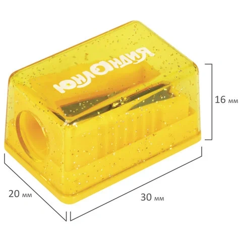 Эргономичный корпус выполнен из пластика ярких цветов ассорти. Прямоугольная форма точилки позволяет удобно держать ее в руке. Острое стальное лезвие обеспечивает быструю и легкую заточку. Карандаш затачивается аккуратно, а опилки остаются в специальном контейнере. Размер - 30х20х16 мм.
