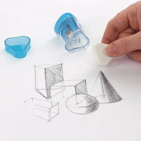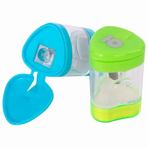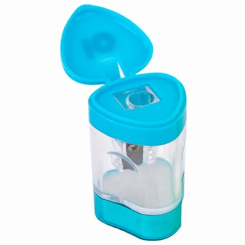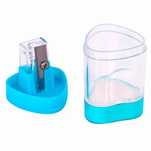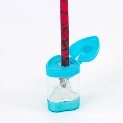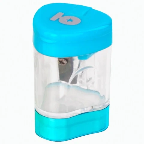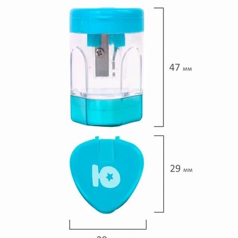 Корпус выполнен из пластика. Острое лезвие обеспечивает высококачественную и точную заточку. Карандаш до 8 мм затачивается легко и аккуратно, а опилки остаются в специальном контейнере. Имеется крышка для закрытия отверстий и ластик. Компактные размеры (47х29х29 мм) позволят поместить точилку в пенал, а благодаря интересной форме она не затеряется на парте или столе среди других принадлежностей.
