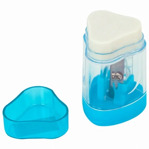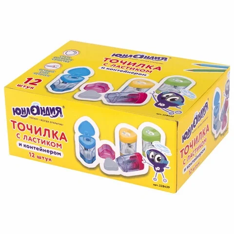 Точилка ЮНЛАНДИЯ 'Трио +', со стирательной резинкой, с контейнером, пластиковая, ассорти, 228439