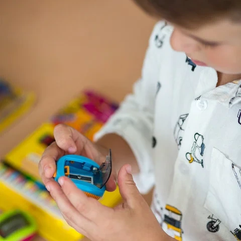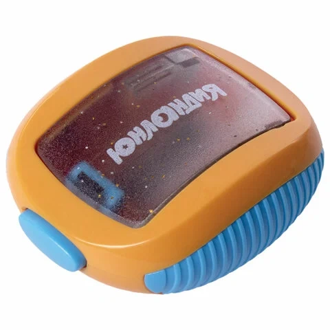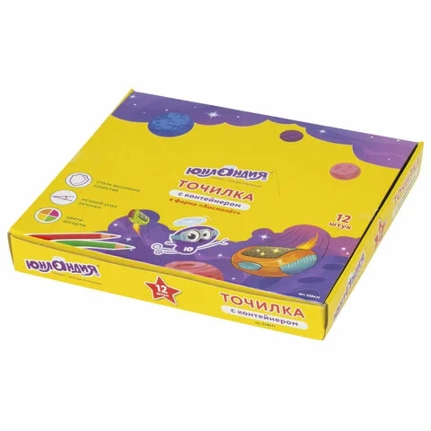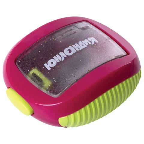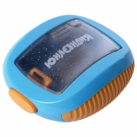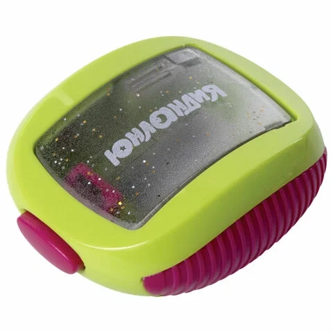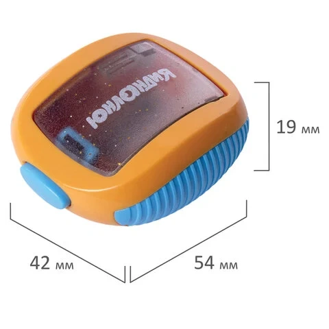 Эргономичный корпус в форме звездолёта выполнен из пластика. Удобная кнопка открытия крышки контейнера. Острое стальное лезвие обеспечивает быструю и легкую заточку. Карандаш затачивается аккуратно, а опилки остаются в специальном контейнере. Размер - 54х42х19 мм.