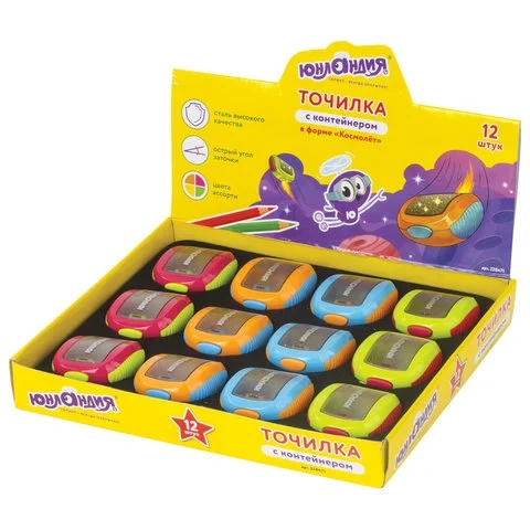 Точилка ЮНЛАНДИЯ 'Звездолет Юнландика', с контейнером, пластиковая, корпус ассорти, 228471