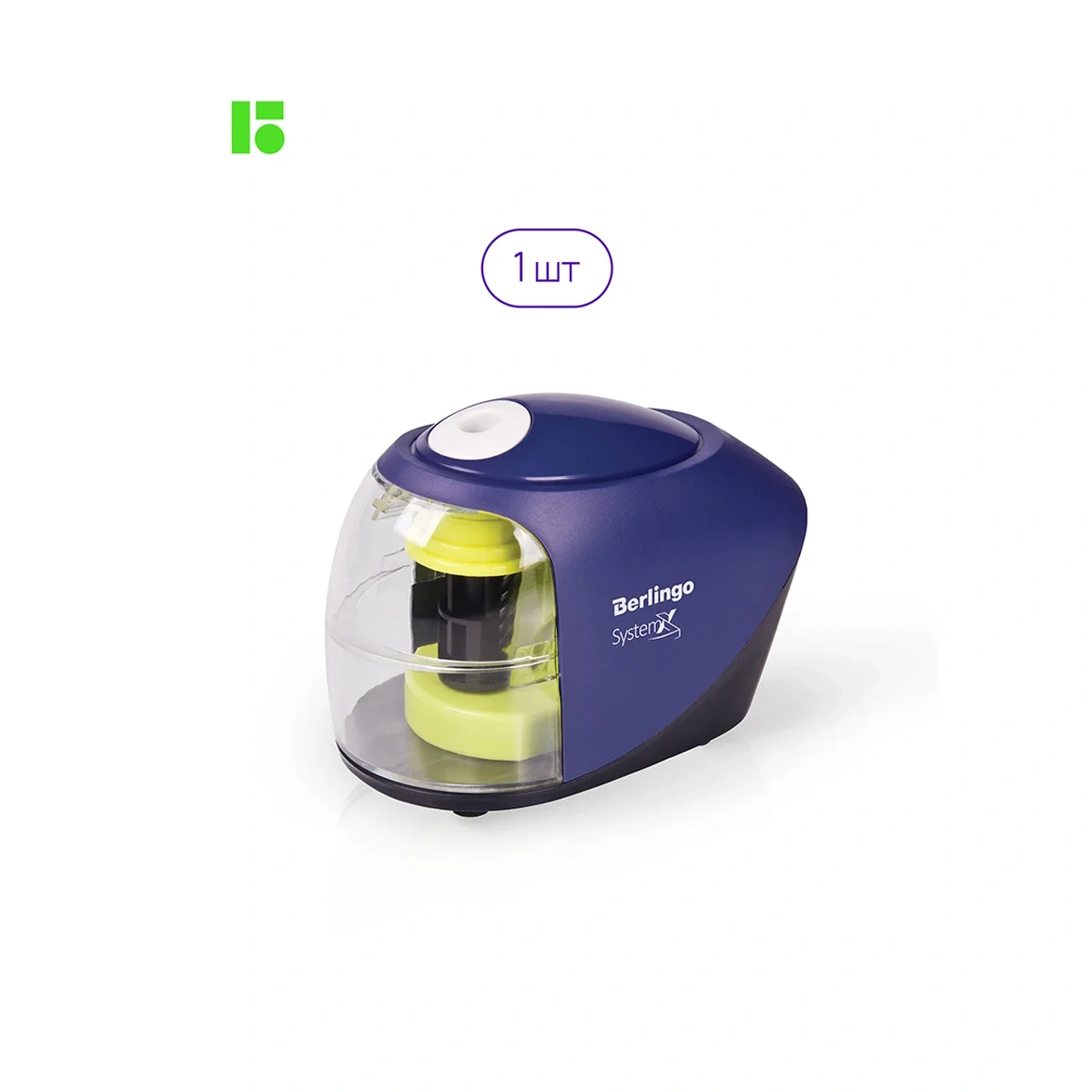 Точилка электрическая Berlingo SystemX 1 отверстие, с контейнером, ассорти
