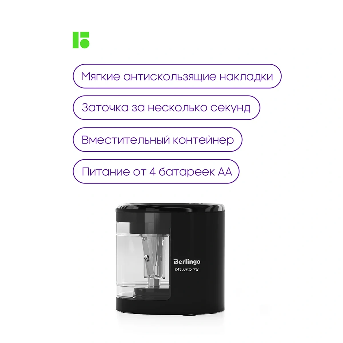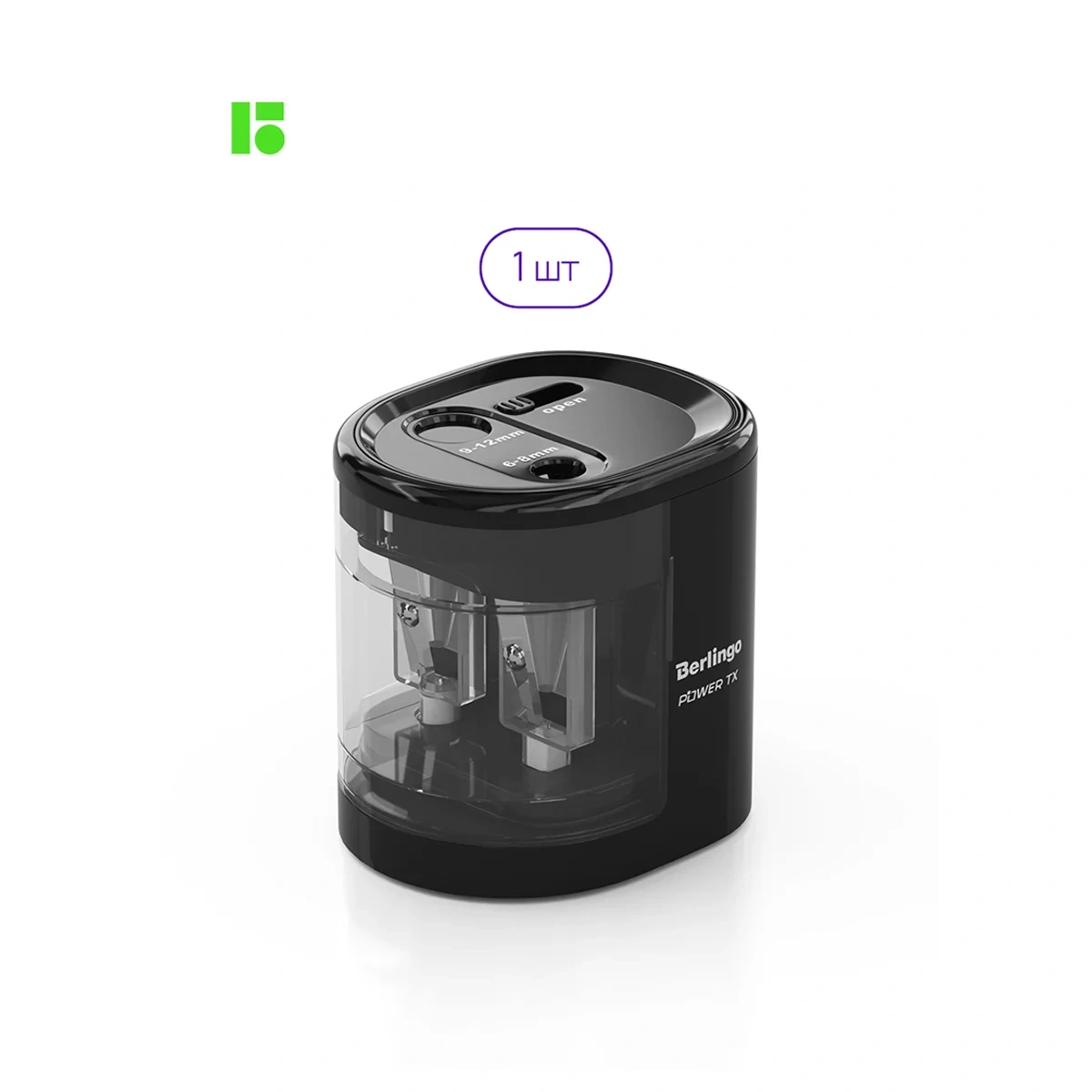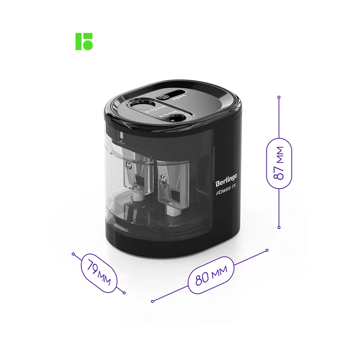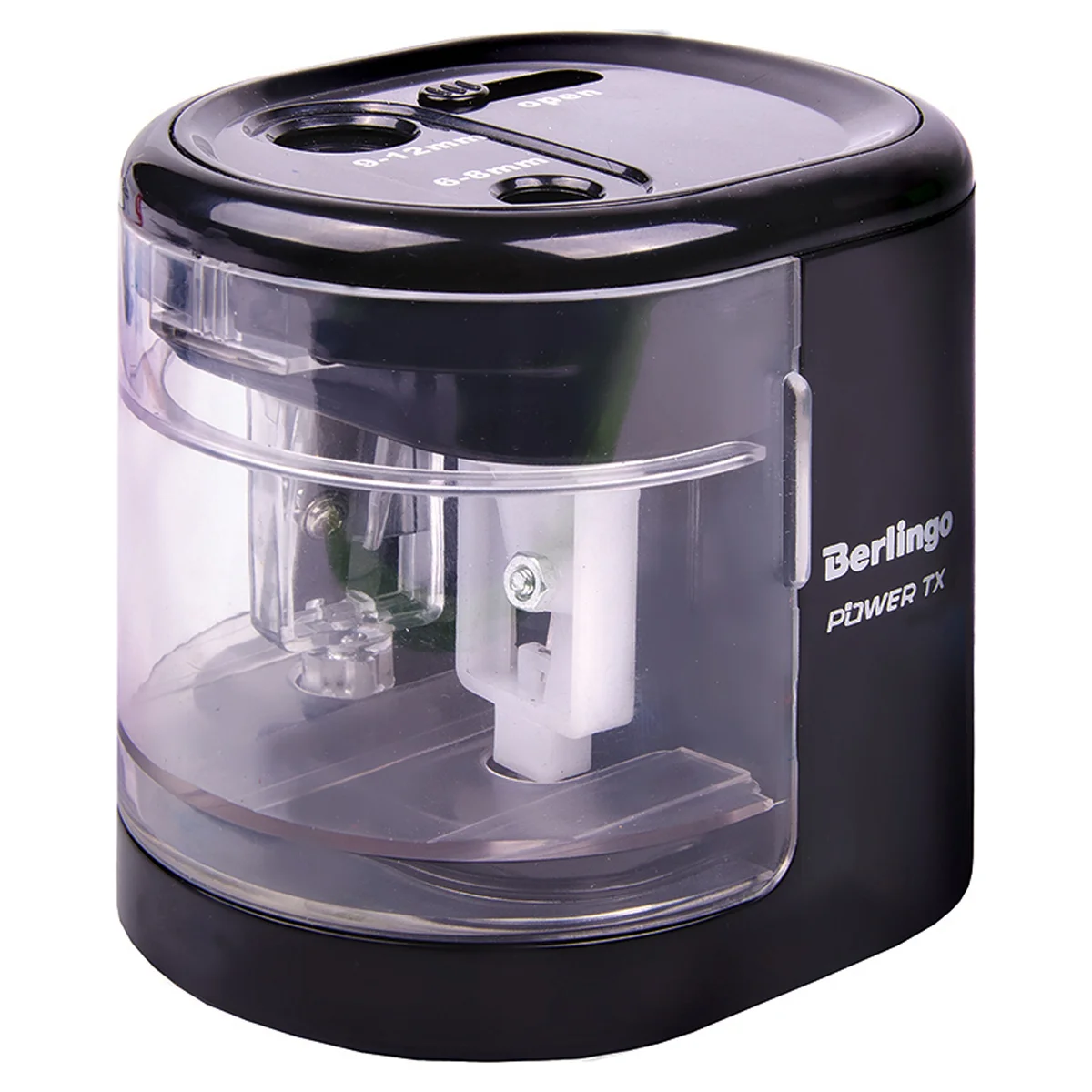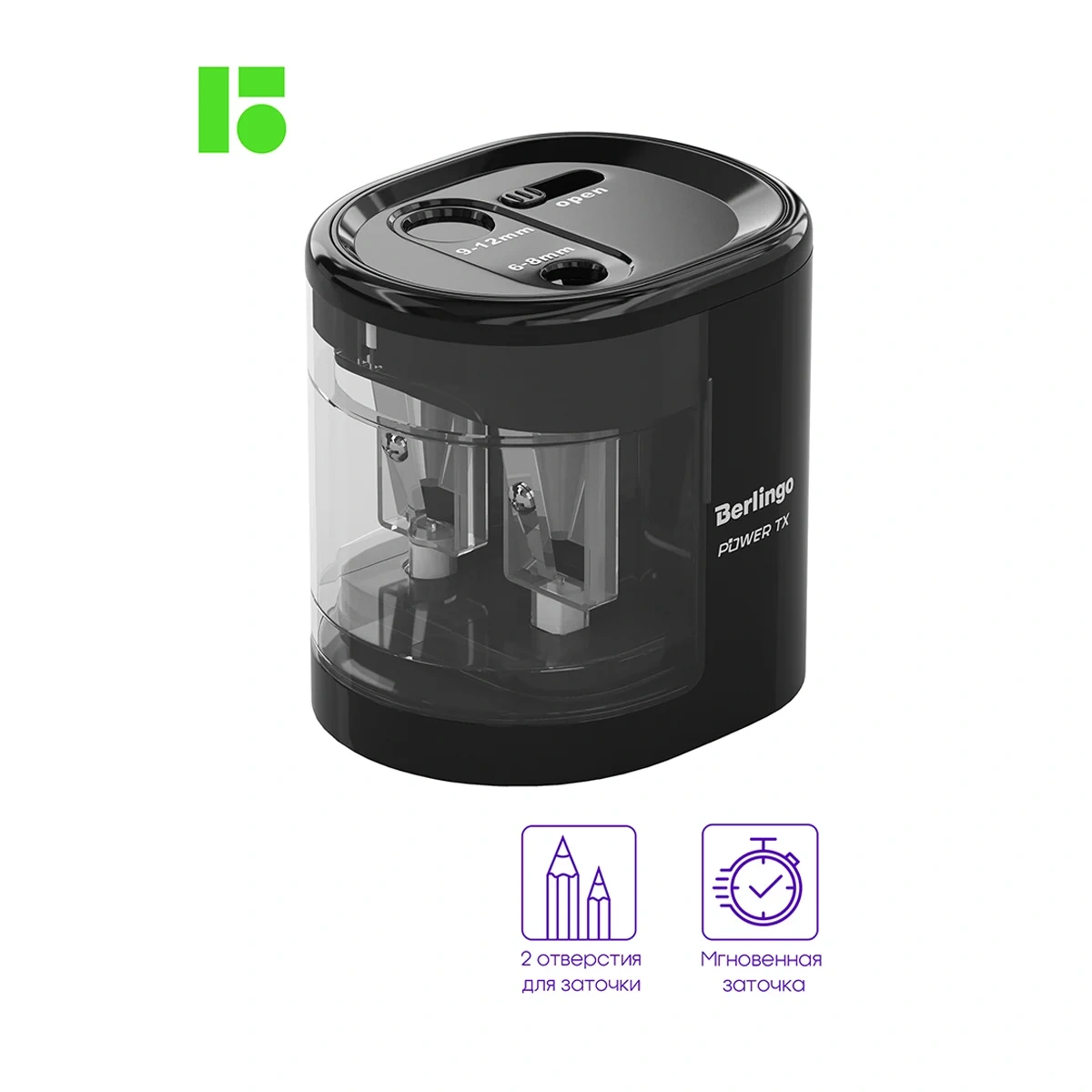 Точилка электрическая Berlingo Power TX 2 отверстия, с контейнером, черная