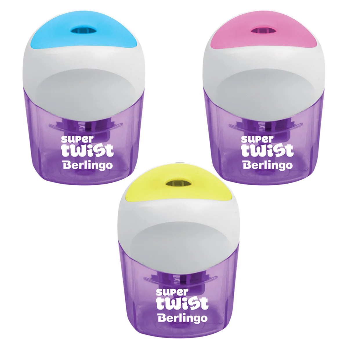 Точилка для карандашей Berlingo SuperTwist 1 отверстие, с контейнером, ассорти