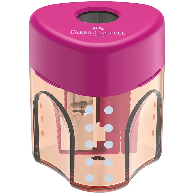 Точилка пластиковая со 'шторкой' Faber-Castell 'Grip Auto Mini' 1 отверстие, контейнер, розовая/бирю
