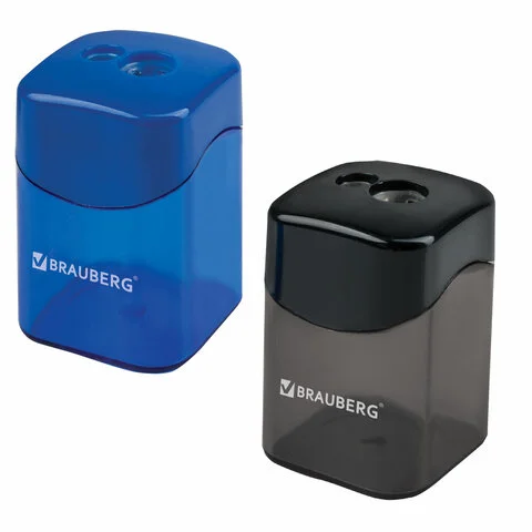 Точилка для карандашей Brauberg Flagman 2 отверстия, с контейнером, ассорти