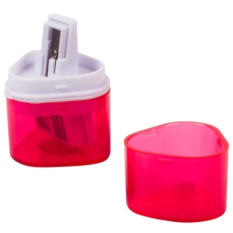 Точилка BRAUBERG 'Case' с контейнером, пластиковая, треугольная, двухсторонняя, 3 отверстия, ассорти