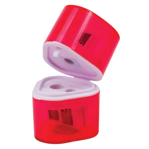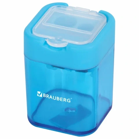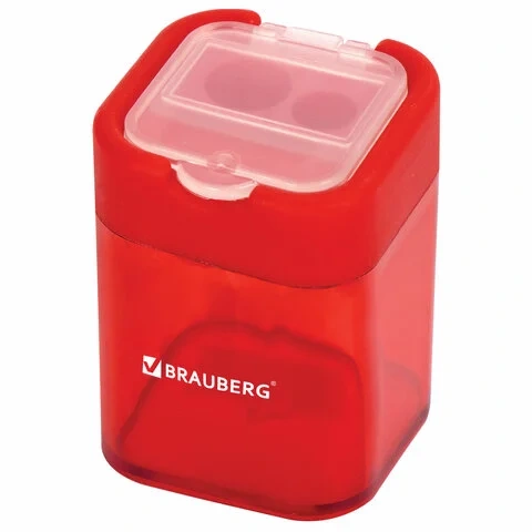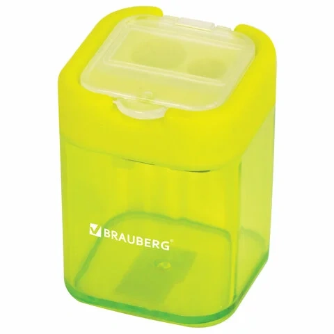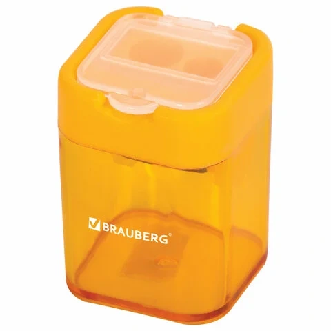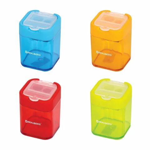 Точилка BRAUBERG 'Peak' с контейнером, пластиковая, прямоугольная, 2 отверстия, цвет ассорти, 226945