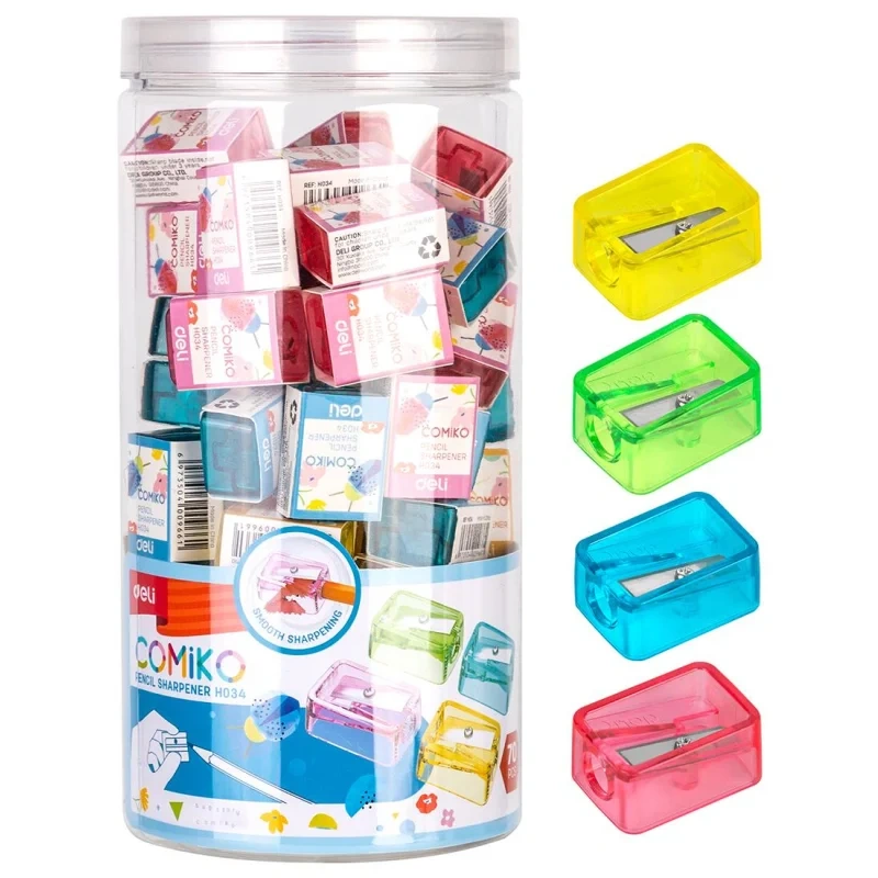 Точилка ручная Deli ER01300, 1 отверстие, с контейнером, пластик, ассорти