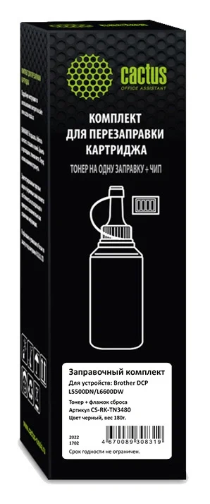 Тонер Cactus CS-RK-TN3480 черный флакон 180гр. (в компл.:флажок) для принтера Brother DCP L5500DN/L6