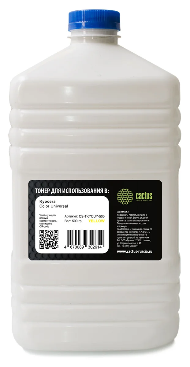 Тонер Cactus CS-TKYCUY-500 желтый флакон 500гр. для принтера Kyocera Color Universal