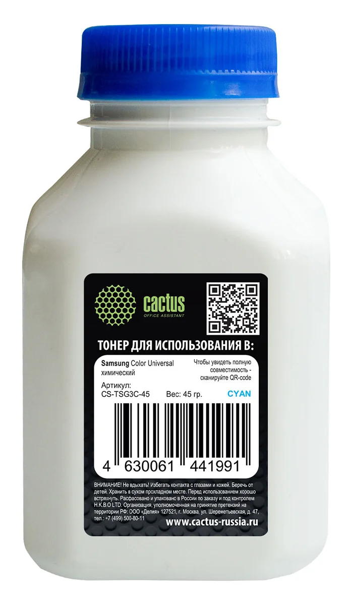 Тонер Cactus CS-TSG3C-45 голубой флакон 45гр. для принтера Samsung CLP Universal